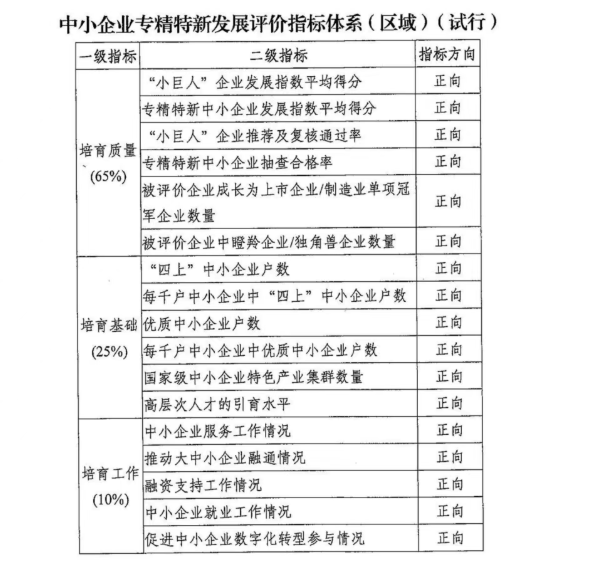表現(xiàn)為:中小企業(yè)專精特新發(fā)展評價指標體系-區(qū)域版(試行)